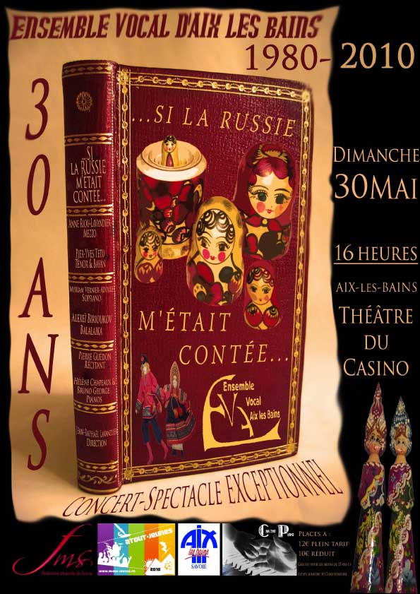 Anne Riou-Lavandier mezzo, Myriam Vernier Adolle Soprano, Hélène Chapeau piano, Bruno Georges piano, Pierre Guédon récitant, Alexeï Birioukov balalaïka, Pier-Yves Têtu ténor et bayan.